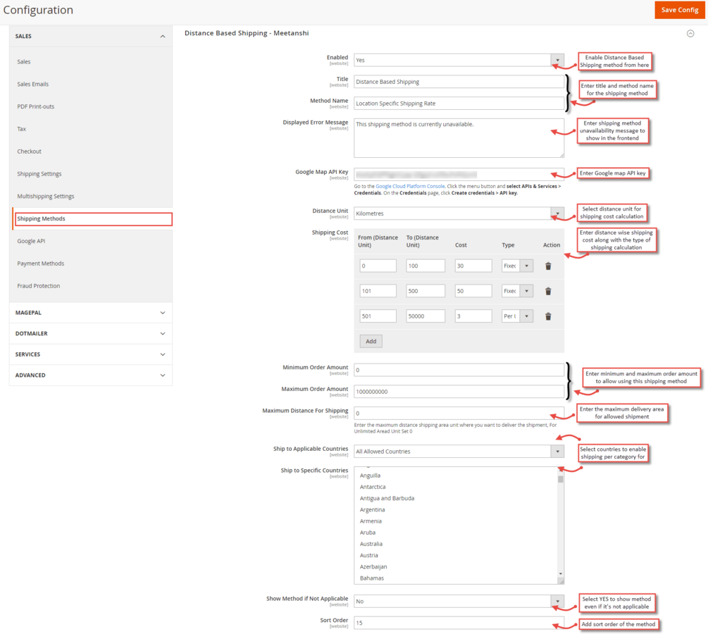 Frontend Demo: https://meetanshi.in/m2d6/distance-based-shipping.html