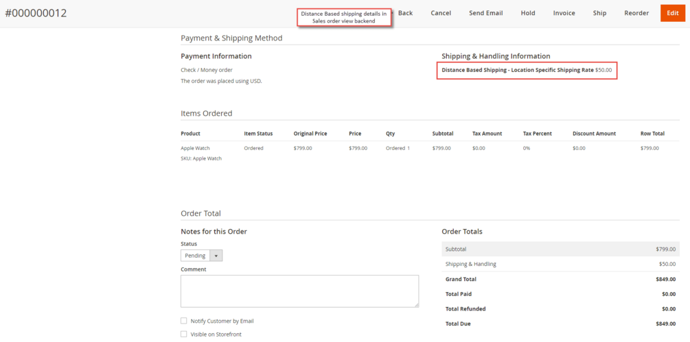 ● From the sales order view in the backend, the admin can see the location wise shipping