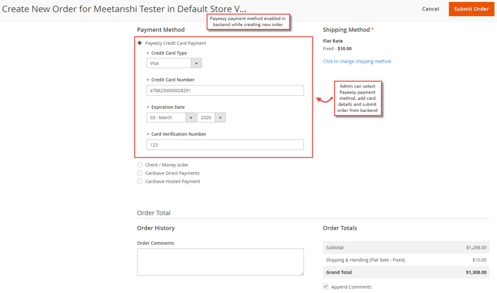 - Facilitates to use the payment method for backend orders.