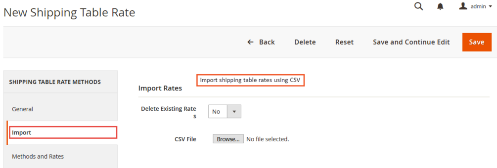 Define table rates in bulk through uploading CSV having Shipping Rates.