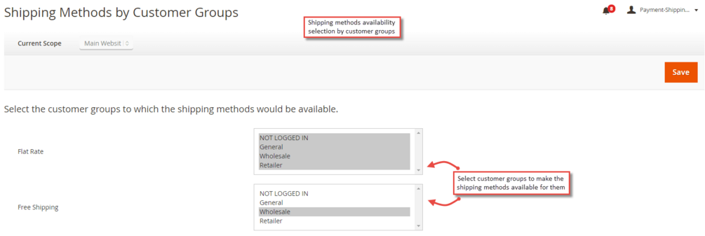 - The customers can see those shipping and payment methods assigned to their groups only.