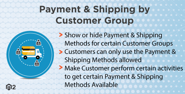You may want to provide different shipping methods as well as payment modes to your customers based on their types such as premium members, VIP customers, guests users, etc.This extension lets you show or hide specific shipping and payment methods for selected customer groups